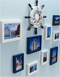 地中海客厅实木照片墙现代简约